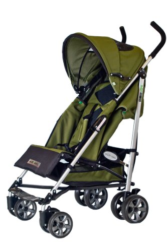 - Product features: Full recline backrest, lightweight aluminum frame, 5-point harness, hyper-extendable 3-stage canopy, peek-a-boo window, ventilated canopy, locking front wheels, enclosed foot rest